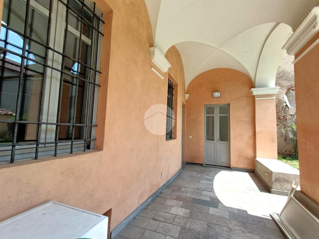 In casa d'epoca attorniata da giardino condominiale, sita in una delle vie storiche e fulcro delle attività commerciali del paese, appartamento ristrutturato al piano terreno. L'immobile gode di riscaldamento autonomo e di un ampio terrazzo perfetto per momenti di relax all'aperto. La soluzione, si compone da una cucina abitabile, una camera da letto matrimoniale, uno studio ed un bagno dotato di doccia. Il posto auto scoperto completa l'unità abitativa.