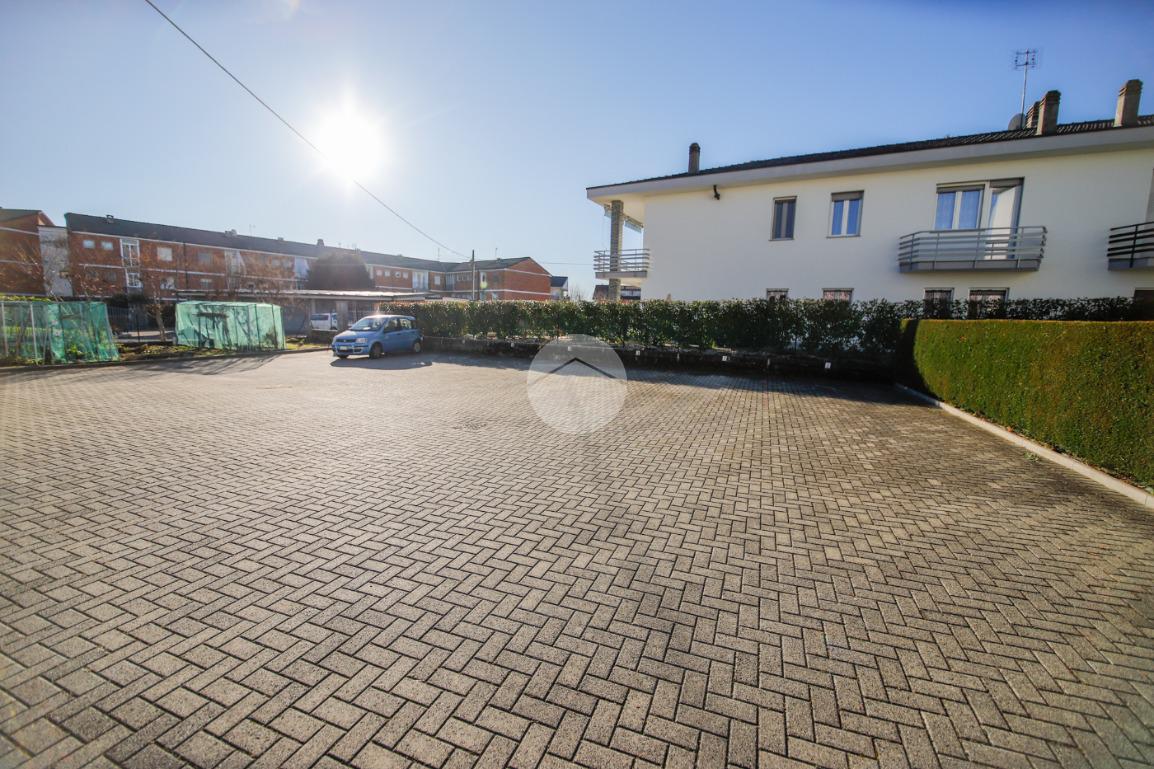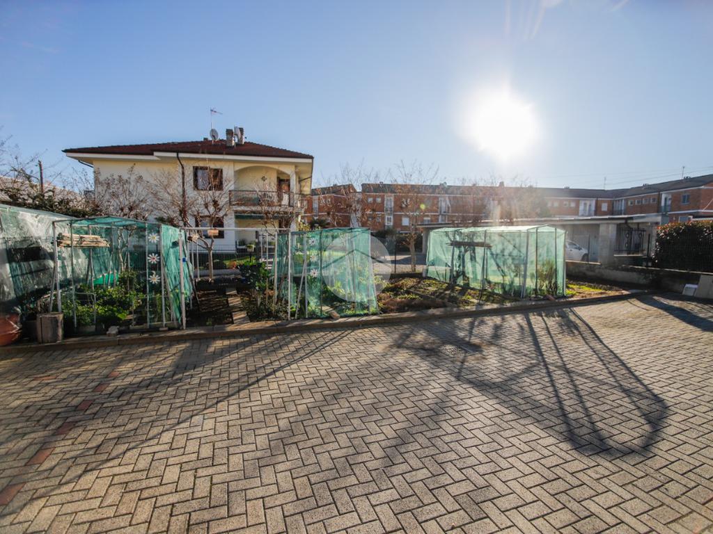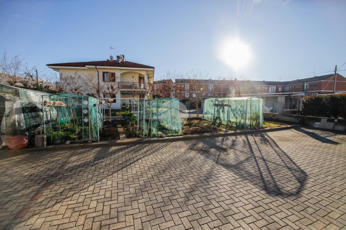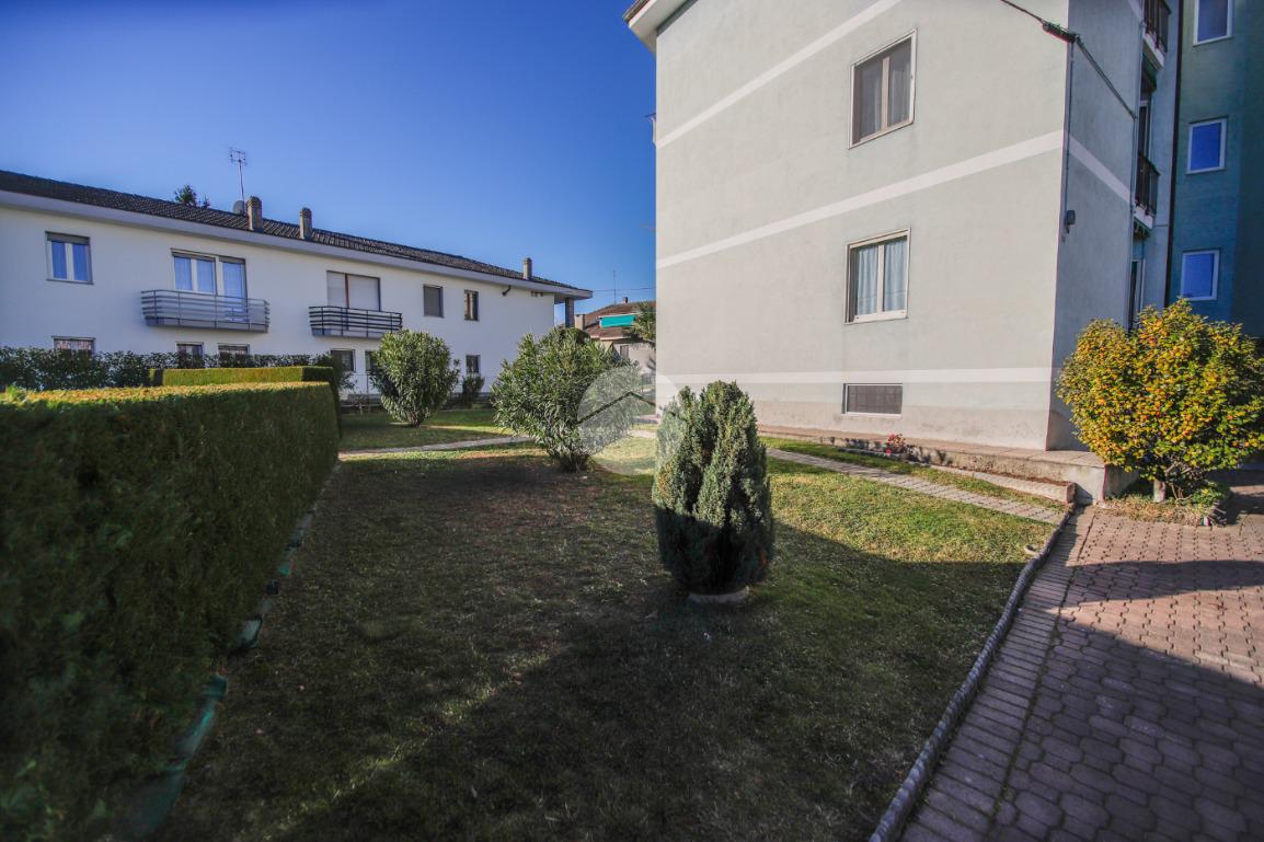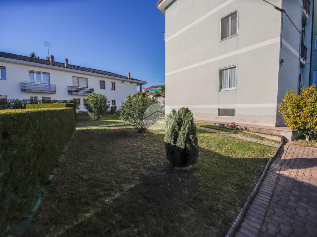 In piccola palazzina attorniata da cortile, suddiviso in piccoli orti e posti auto, e giardino condominiale, appartamento di generosa metratura al piano secondo. La zona giorno si articola di una pratica cucina abitabile e di un soggiorno. La zona notte, caratterizzata da pavimentazione in parquet, vanta una camera da letto matrimoniale con sfogo sul balcone ed una cameretta. Il bagno dotato di vasca gode di propria aria e luce. L' immobile si presenta in buono stato interno con infissi esterni in alluminio con doppi vetri ed è munito di valvole termostatiche. Il box auto interno cortile, adatto al ricovero di un autovettura, e la cantina sono a pertinenza della soluzione.