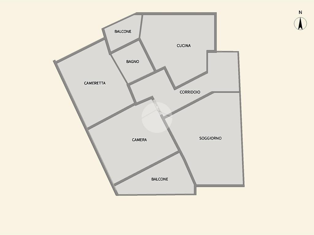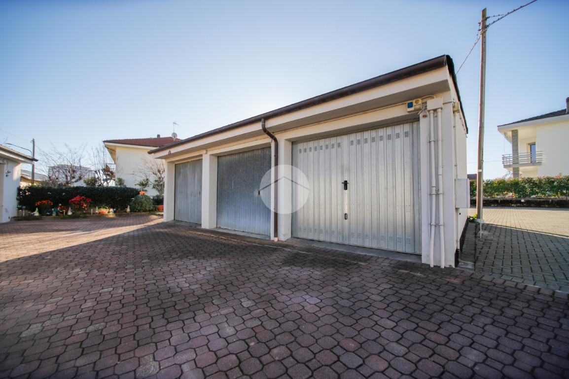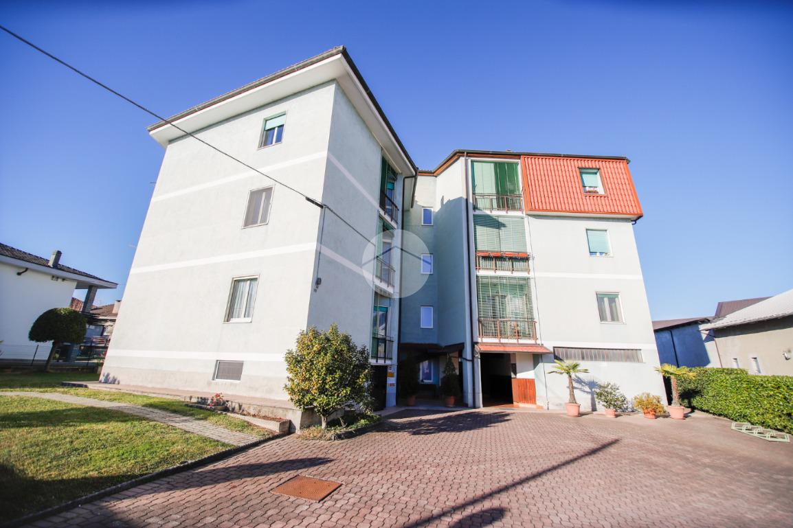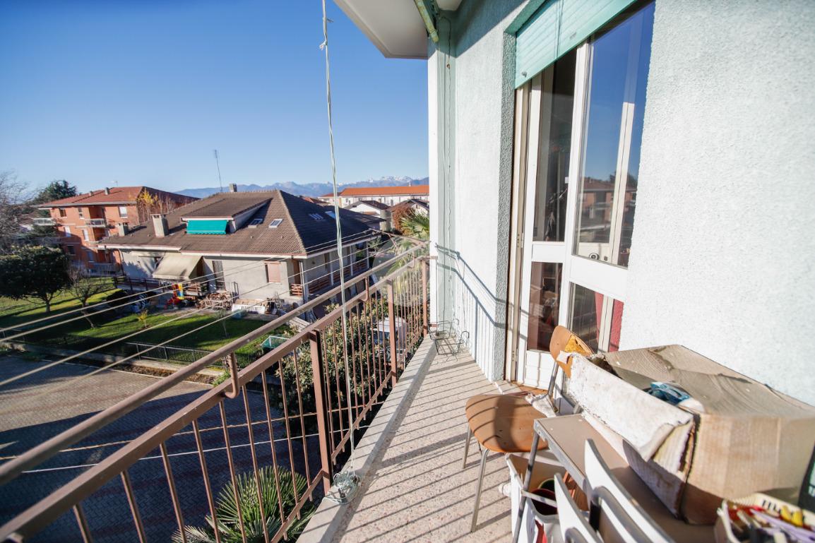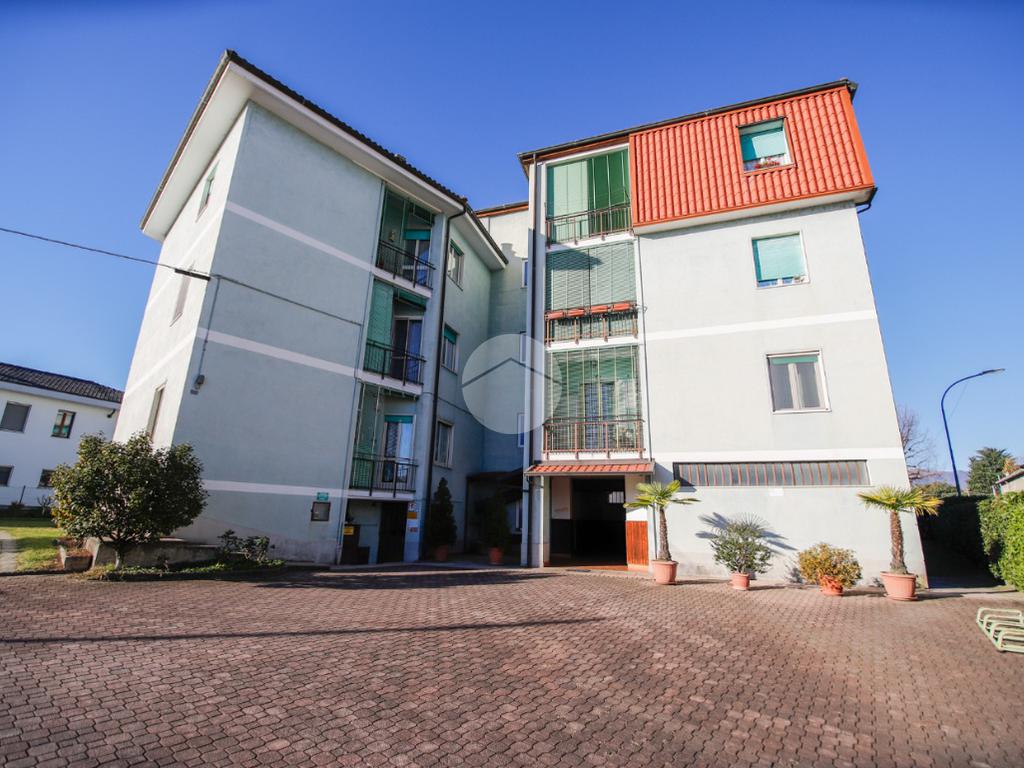 In piccola palazzina attorniata da cortile, suddiviso in piccoli orti e posti auto, e giardino condominiale, appartamento di generosa metratura al piano secondo. La zona giorno si articola di una pratica cucina abitabile e di un soggiorno. La zona notte, caratterizzata da pavimentazione in parquet, vanta una camera da letto matrimoniale con sfogo sul balcone ed una cameretta. Il bagno dotato di vasca gode di propria aria e luce. L' immobile si presenta in buono stato interno con infissi esterni in alluminio con doppi vetri ed è munito di valvole termostatiche. Il box auto interno cortile, adatto al ricovero di un autovettura, e la cantina sono a pertinenza della soluzione.